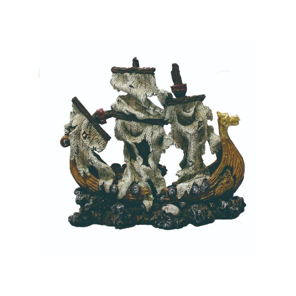 Decorative fish tank ornament inspired by Viking long boats
